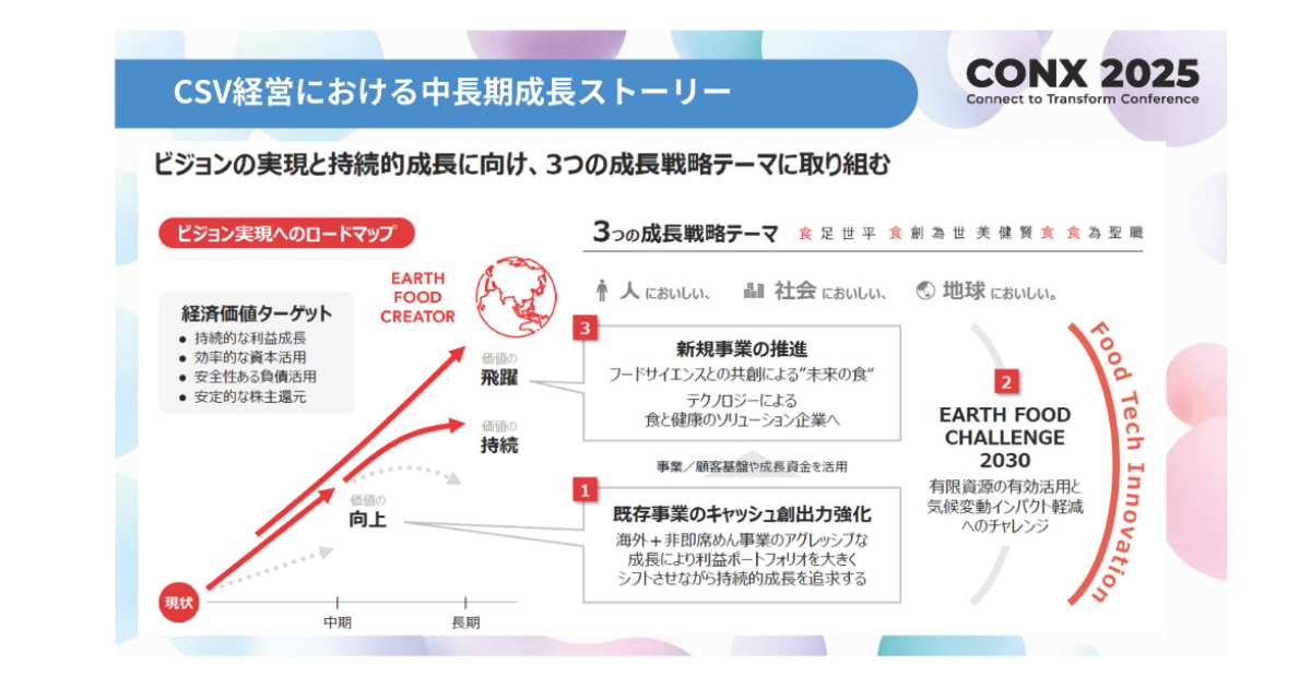 香川氏の言葉は統合報告書「VALUE REPORT2025」にある中長期成長戦略によっても裏付けられる。そこには、即席めんを中心とする「既存事業のキャッシュ創出力強化」によって得た原資を、フードサイエンスを核とする「新規事業の推進」に投資し、未来の食を創造するという壮大なビジョンが描かれている。