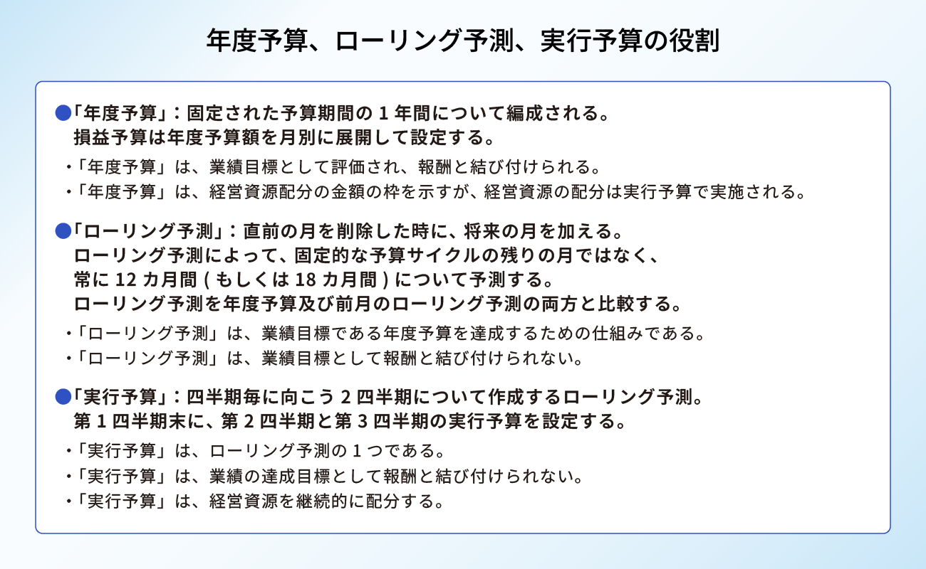 石橋:そこが決定的な違いです。「年度予算」と「ローリング予測」は役割が明確に違います。