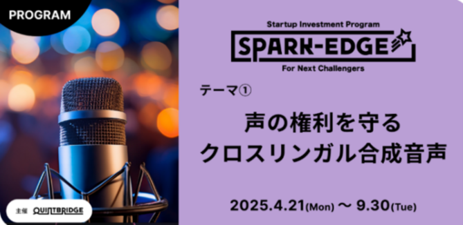 NTT西日本は、「Spark-Edge For Next Challengers」第1弾の募集テーマ①「声の可能性を広げるビジネス~声の権利を守るクロスリンガル合成音声~」において、こんにちハロー、Parakeetの2社を採択した。