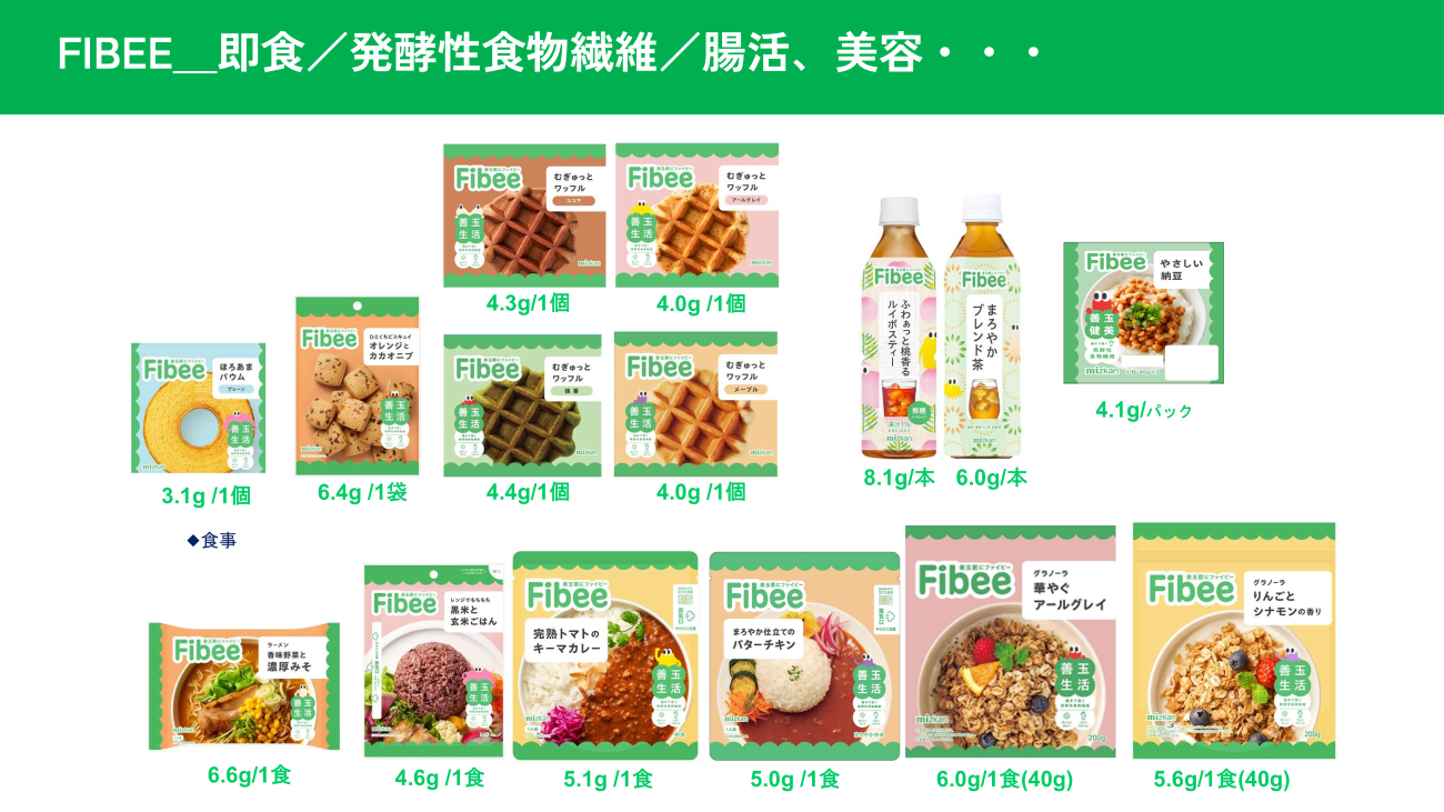 この課題に対し、ミツカンが打ち出した施策の一つが新ブランド「Fibee(ファイビー)」だ。調理不要な“即食”をコンセプトに掲げつつ、発酵性食物繊維による腸活・美容効果を訴求している。さらに、この「Fibee」を中心に、顧客との“つながり”を強める取り組みに注力しているのだという。