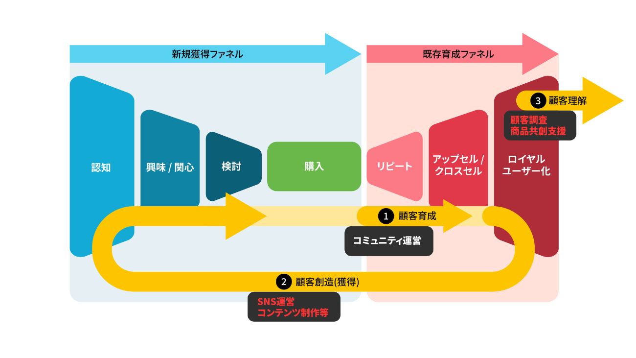 - 共創商品の開発支援:コミュニティの施策として、ファンとの商品開発なども企画・実行