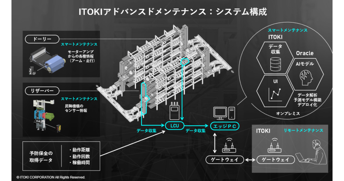 イトーキは2025年11月5日、AI解析によって自動物流倉庫設備の故障兆候を事前に検知できる予知保全システム「スマートメンテナンス」を開発したと発表した。このシステムは、リモートで設備の稼働状況把握・復旧支援ができる「リモートメンテナンス」と一体となった保守サービス「ITOKIアドバンスドメンテナンス」として、2026年1月から販売予定である。