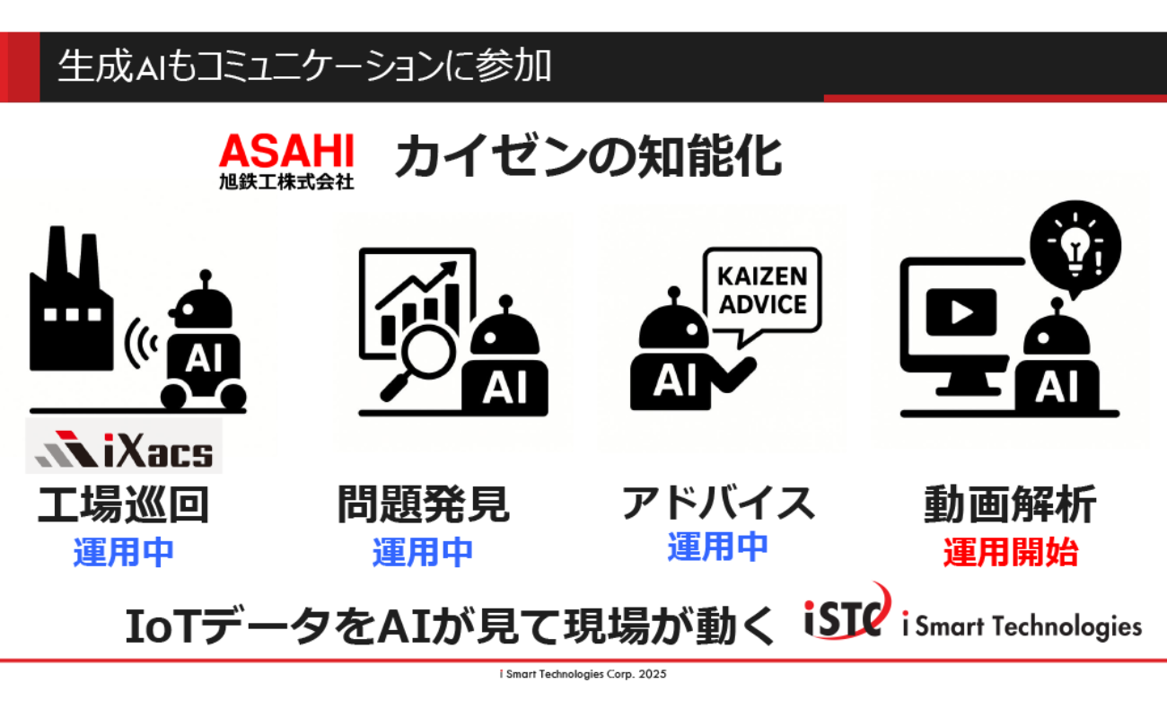 これらは「iXacs(アイザックス)」というIoTツールでデータを収集し、改善を重ねた結果ですが、これをさらに加速させるのが現在のAI活用の狙いです。