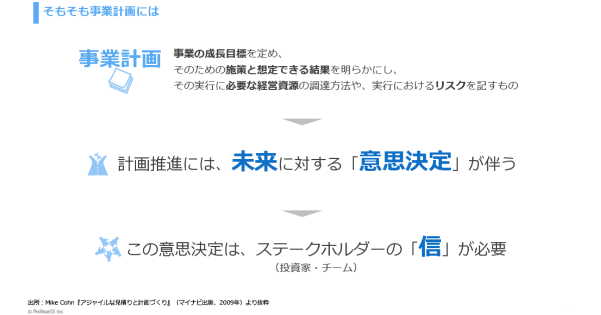 「事業計画とは“未来”を扱うものです。不確実性が高い中で、『ここまで考え抜いたのだから、こう進めていこう』と意思決定をするためのツールです。それはある種の“信心”に近い」