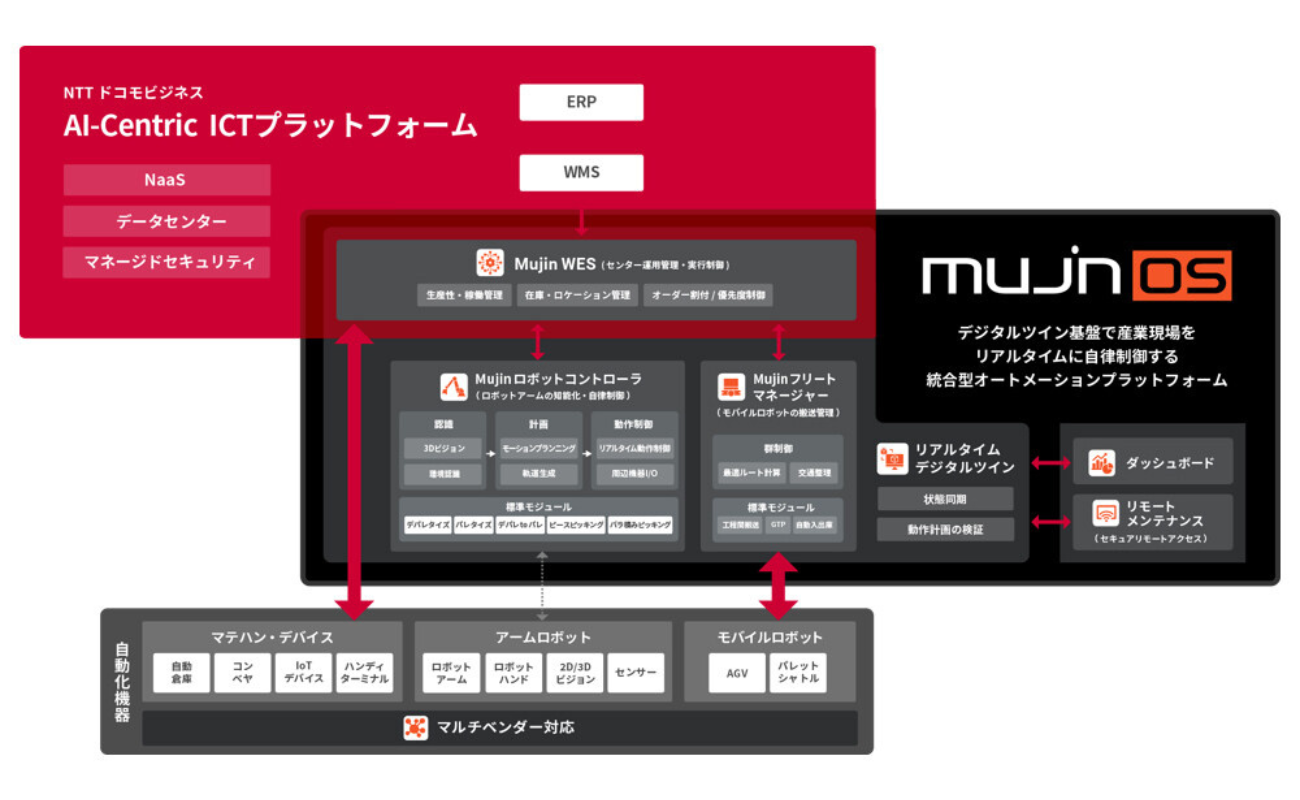 2025年12月1日、NTT、NTTドコモビジネス、Mujinの3社は資本業務提携を締結した。今回の提携により、NTTグループの通信・クラウド・AI技術と、Mujinのロボット制御およびデジタルツイン技術を融合し、製造・物流領域の高度な自動化と業務変革を推進する。本提携は、世界的な人手不足や労働コスト増、AI技術進展という市場背景を受けて、多品種少量生産や柔軟な自動化ニーズの高まりに対応するものだ。