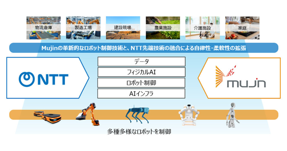 また、NTTグループは中期経営戦略で「データ・ドリブンによる新たな価値創造」を掲げており、光技術を軸としたIOWN構想や、生成AI、HRI(ヒューマン・ロボット・インタラクション)等の先端技術とMujinの技術を結集。製造・物流業界にとどまらず、幅広い産業で自律的なフィジカルAI実用化や業務効率化に取り組む。