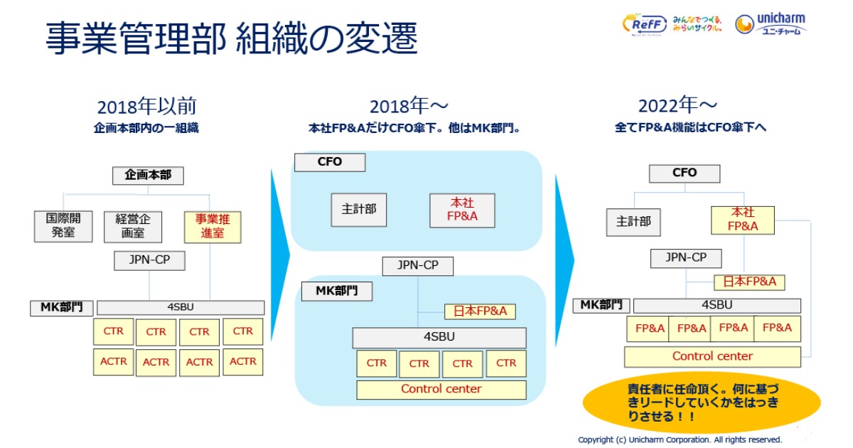 その際、データの収集・加工を専門に行う「コントロールセンター」を継続して機能させました。これにより、各事業部のコントローラーは煩雑な集計作業から解放され、より高度な「分析」や「意思決定支援」に集中できる体制が整いました。外資系の手法をそのまま取り入れるのではなく、自社の成長痛と向き合いながら、必要に応じて戦略的にでき上がったのが現在の「ユニ・チャーム流FP&A」なのです。