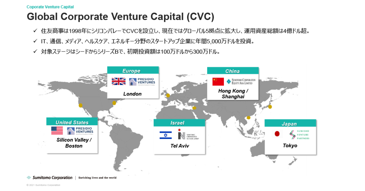 世界5拠点で展開する住友商事のグローバルCVC体制