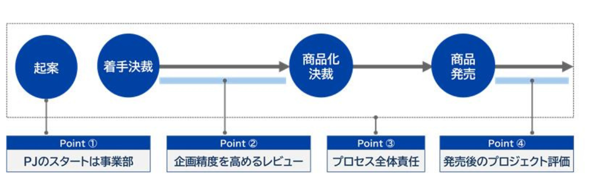谷口:はい。通常の商品開発では、開発の後半になってから工場や販売部門が関わることが多いですが、ME制では「フロントローディング」を徹底しています。これは、商品開発の初期段階に重点を置く進め方で、開発期間の短縮とコスト削減、品質向上につながるだけでなく、チームとして解くべき本質課題の目線を早期にそろえるための方法でもあります。