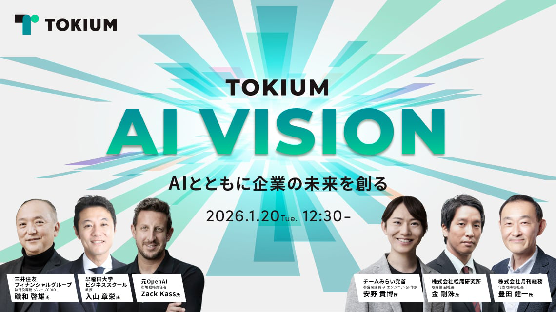 また、大規模なカンファレンスも実施しました。元OpenAI 市場戦略責任者のザック・カース氏や、チームみらい党首の安野貴博氏、早稲田大学ビジネススクール教授の入山章栄氏、松尾研究所副社長の金剛洙氏など、AI領域のトップランナーをお招きして、2,000名を超える方々にAIの最新知見を共有する「TOKIUM AI VISION」です。