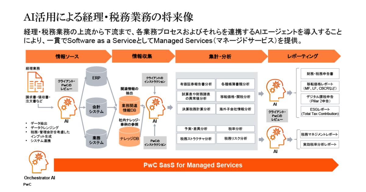 そこでPwCが提唱するのが、AIエージェントを業務プロセスに組み込み、一連の流れをSaaS(Software as a Service)として提供する「マネージドサービス」構想だ。