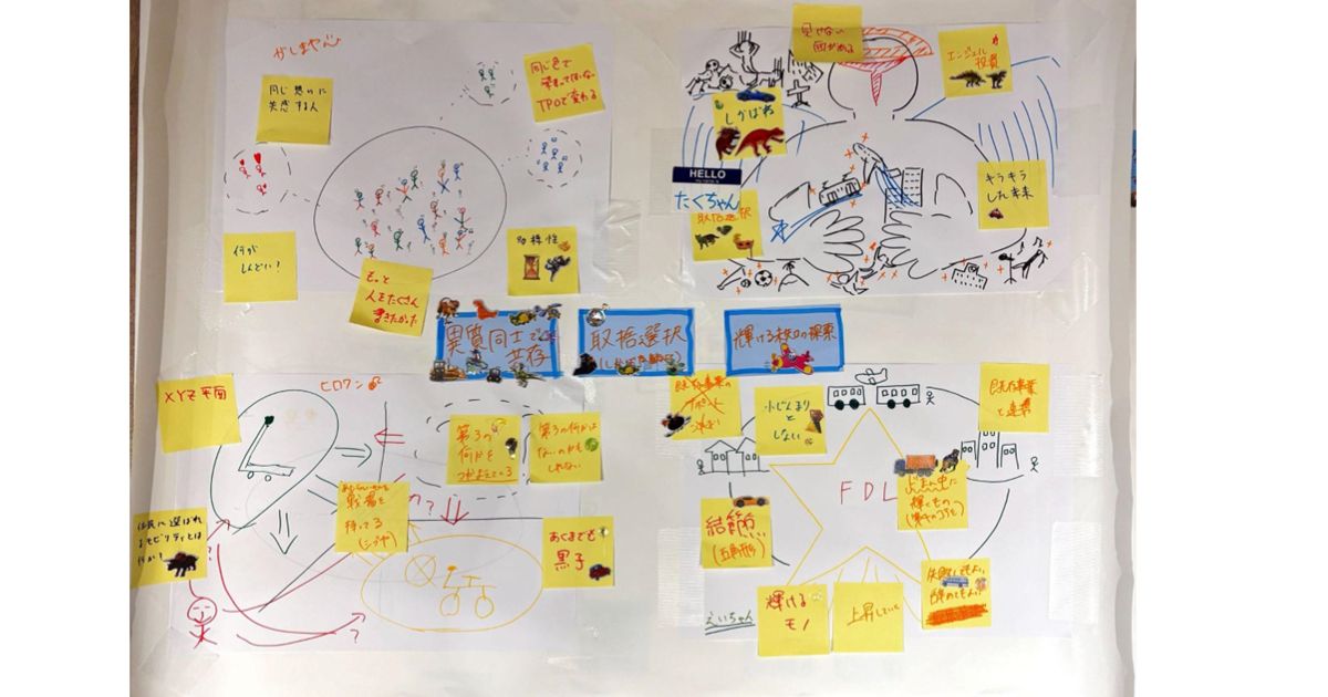 坂井:その後、FDLメンバーそれぞれが所属するプロジェクトで実現したい将来像を「絵」で描きました。言葉にすると「売上向上」といった無機質な表現になりがちですが、絵にすることで「多彩な変態が集まっている状態」といった、文字化しにくい熱量が共有されたのは大きな収穫でした。
