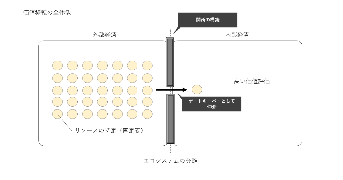 経済学者の岩井克人氏が説くように、利潤は「二つの閉じられた市場(流通の場)において成立している異なった価値体系同士が仲介されること」によって創出されます。かつての貿易商が香辛料を運んだように、現代のイノベーターは「社会・経済の断絶」や「情報の断絶」を跨いでリソースを運び、利潤を創出しています。これが「価値移転」によるイノベーションです。