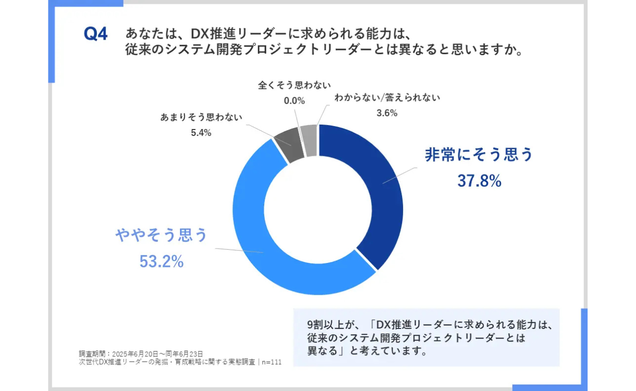 2026年1月23日、リンプレスが「次世代DX推進リーダーの発掘・育成戦略に関する実態調査」の結果を公開した。本調査は、将来のDX(デジタルトランスフォーメーション)推進に向けた人材戦略を検討する企業の責任者、部門長、担当者111名を対象に、2025年6月20日から6月23日にかけてインターネットによるアンケート調査として実施された。
