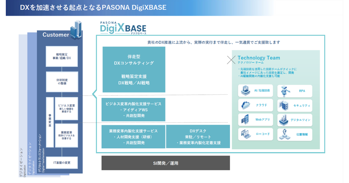 パソナは2026年1月28日、企業のデジタル・トランスフォーメーション(DX)推進を一気通貫で伴走支援する新ソリューション「PASONA DigiXBASE(デジクロベース)」を開始したと発表した。