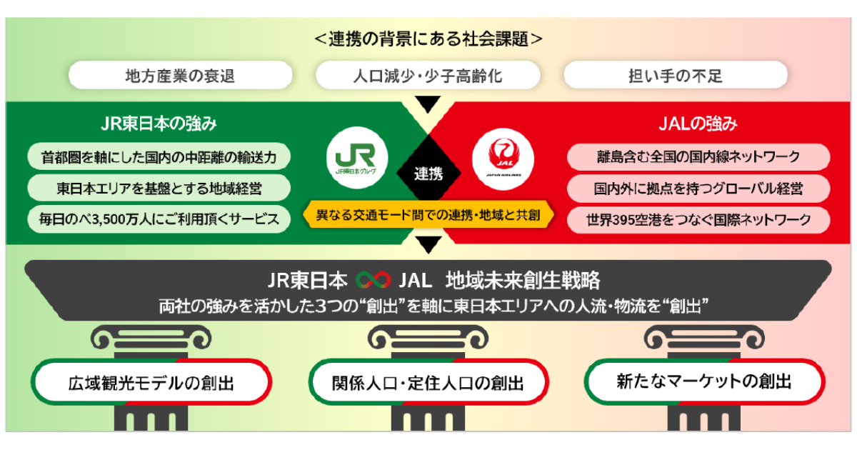 2026年2月6日、JR東日本とJALは「東日本エリアの地方創生に向けた連携強化」に関する協定の締結を発表した。本協定は「地域未来創生戦略」と位置づけられ、両社の強みである鉄道と航空分野を組み合わせ、東日本エリアの地方創生に資する新たな価値の創出を目的としている。