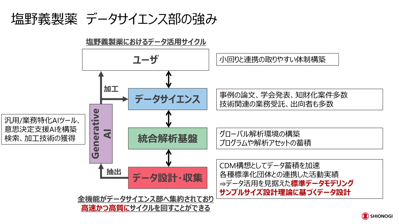 SHIONOGI データサイエンス部の強み/SHIONOGIにおけるデータ活用サイクル
