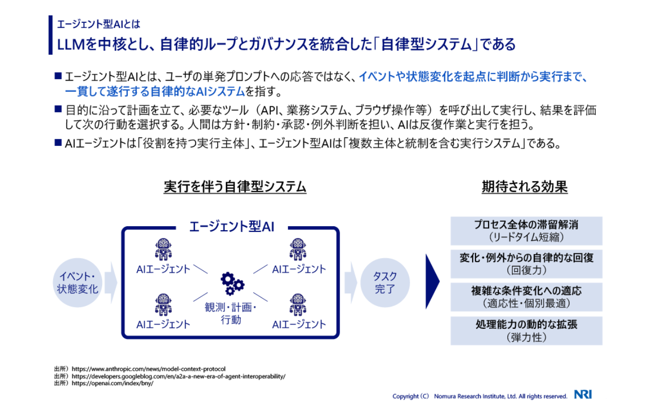 NRIの幸田敏宏氏は、2023年に起きた生成AIの大きな波に続く「次の波」として、エージェント型AI(Agentic AI)を、次のように定義した。