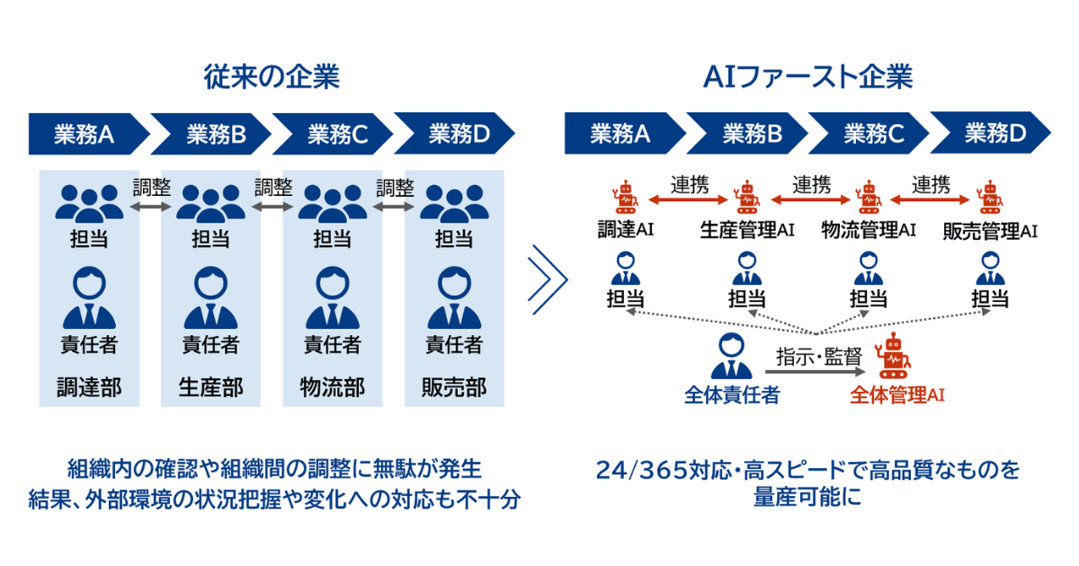 近年、生成AIをはじめとしたAI技術の進展により、企業のAI導入機運が高まってきた。一方で、導入の先進企業でも多くがPoC段階で止まっている現実があり、定着や業務プロセス全体への適用にまで至らないケースが散見される。この背景には、従来の「人の作業が中心・技術はサポート」という業務設計思想や、レガシーシステムの存在が挙げられる。
