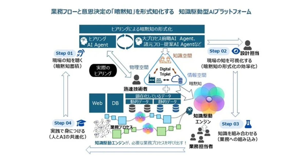 データ活用中心の従来型DXにとどまらず、組織が持つ「知識」そのものを競争力の源と捉える「知識駆動型DX」の実現を目指す。「単なるAIツール導入」ではなく、知識構造の全体的再設計と、人・AIが共進化する基盤の構築が特徴である。