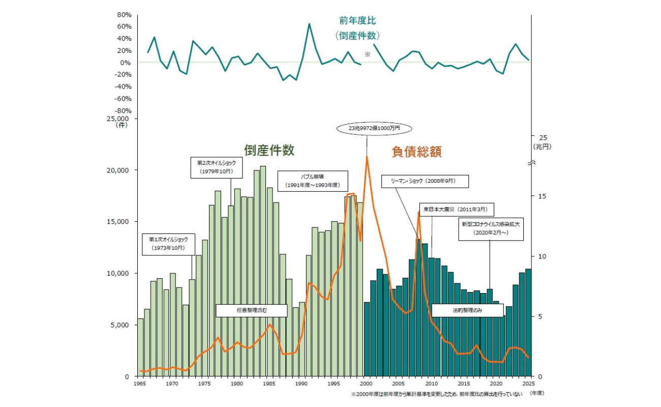 帝国データバンク、2025年度の企業倒産状況を発表 2年連続1万件超、物価高や人手不足が中小企業直撃