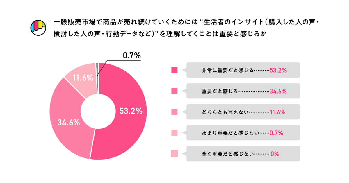 売れ続ける商品・サービスの条件として、約9割が「生活者インサイトの理解が重要」と認識している。アンケートからは、「機能よりもインサイトを捉えた商品が長く売れる」「AI時代でも生活者の生の声が意思決定に重要」といった意見がみられた。