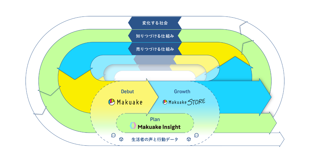 「PDGサイクル」の中核となるのが、「Makuake」「Makuake STORE」「Makuakeインサイト」である。「Makuake」は新商品・新サービスのデビューを支援する場、「Makuake STORE」はデビュー後の販路拡大とEC販売・物流代行などを担う。一方、「Makuakeインサイト」は、生活者の声や行動データを分析し、各フェーズでの意思決定を支援する商品開発ツールである。