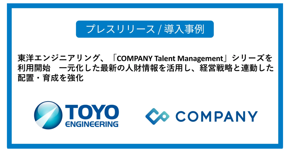 2026年4月、WHI Holdingsは、東洋エンジニアリング(TOYO)が統合人事システム「COMPANY」のタレントマネジメント製品「COMPANY Talent Management」(呼称:CTM2.0)の利用を開始したと発表した。TOYOは、プラント建設を主力事業とする総合エンジニアリング会社であり、グローバルな事業展開と業態変革を推進している。