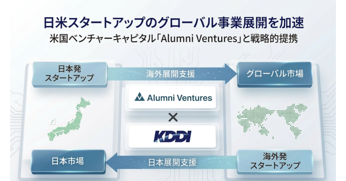 KDDIは2026年4月27日、米国のベンチャーキャピタル大手Alumni Venturesと戦略的提携契約を締結し、同社が新設する投資ファンド「Alumni Ventures Japan+US Bridge Fund」へ出資することを発表した。