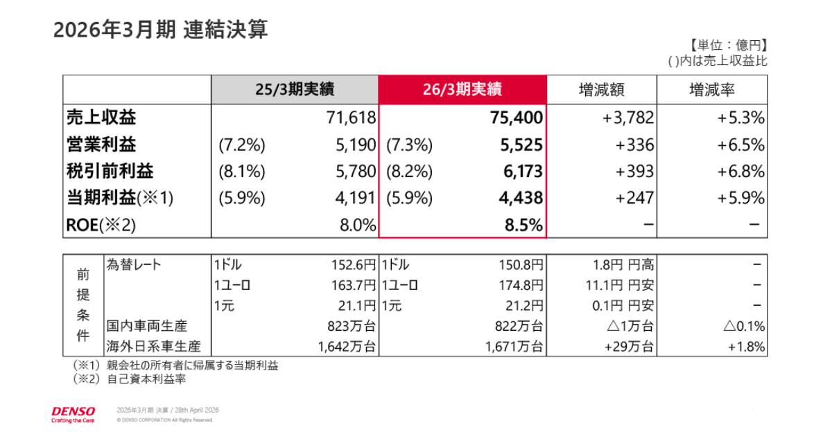 デンソーは2026年4月26日、2026年3月期の連結決算を発表した。